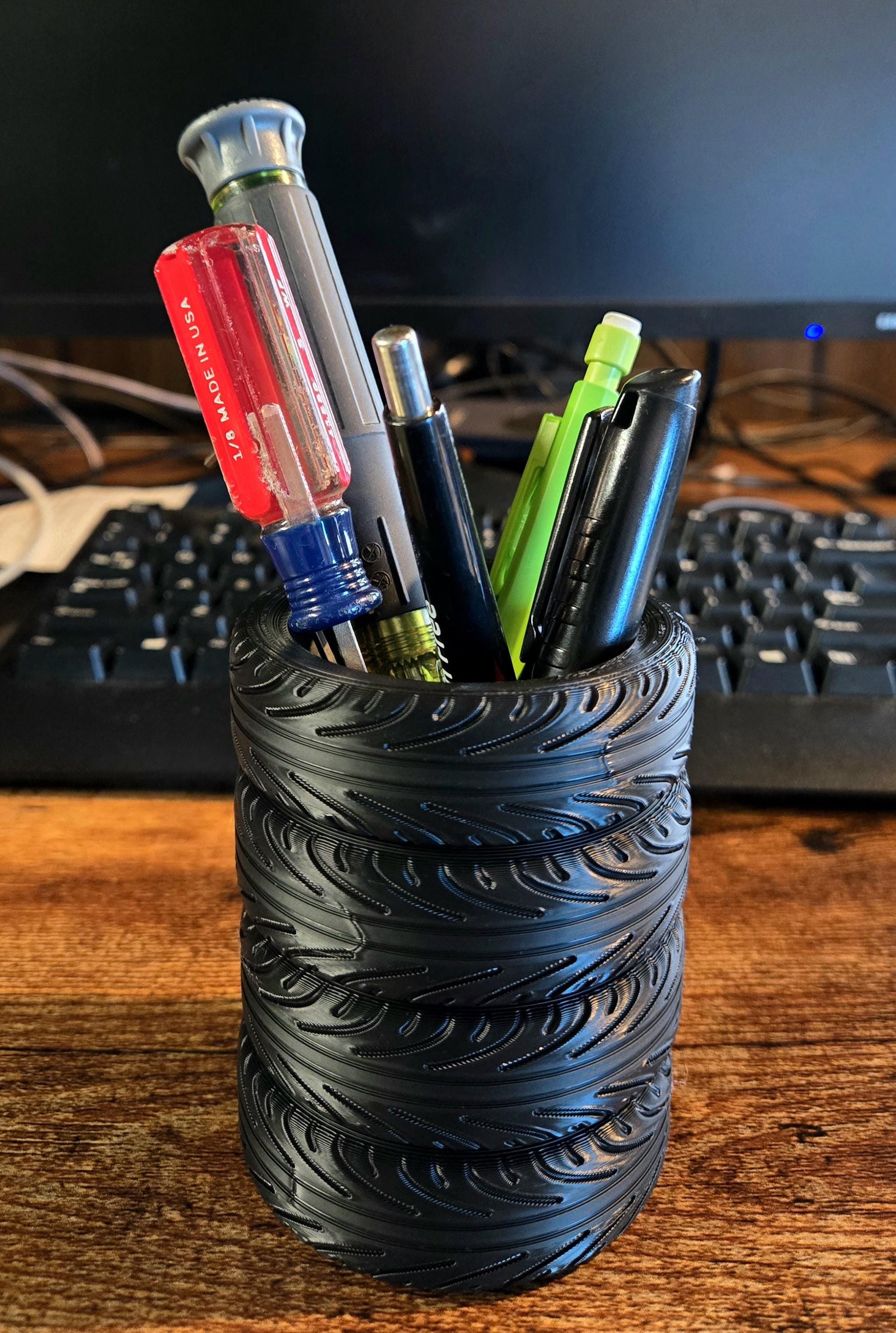Stacked Tire Desk Organizer – Car-Themed Pen Holder, Garage Office Decor, Mechanic Gift, 3D Printed Auto Organizer